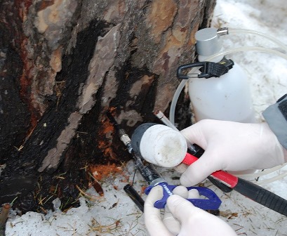 Служба СЭС по уничтожению короеда-типографа в Минусинске.